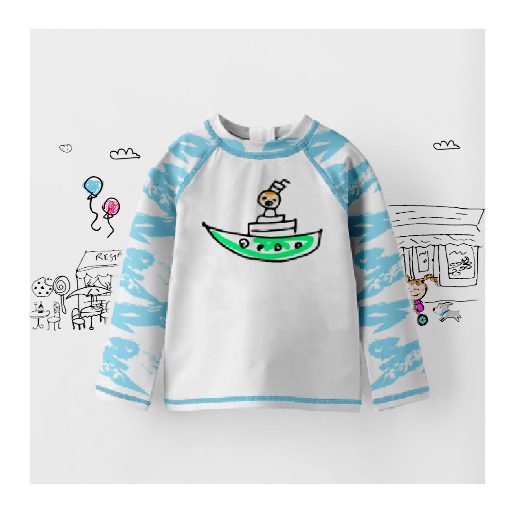 Toddler’s Jelly on a Boat Print Blue Long Sleeve Swimwear Shirt